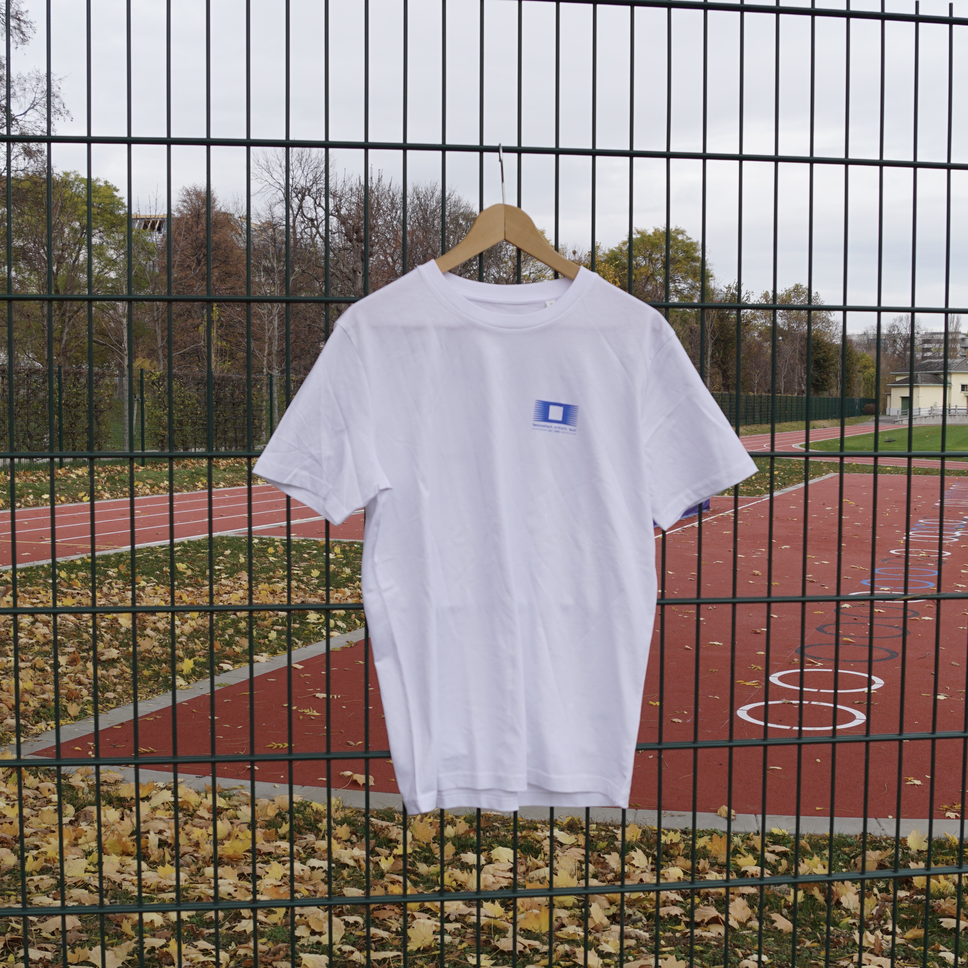 - Schwarzer Druck auf weißem T-Shirt verfügbar in den Größen S, M, XL.